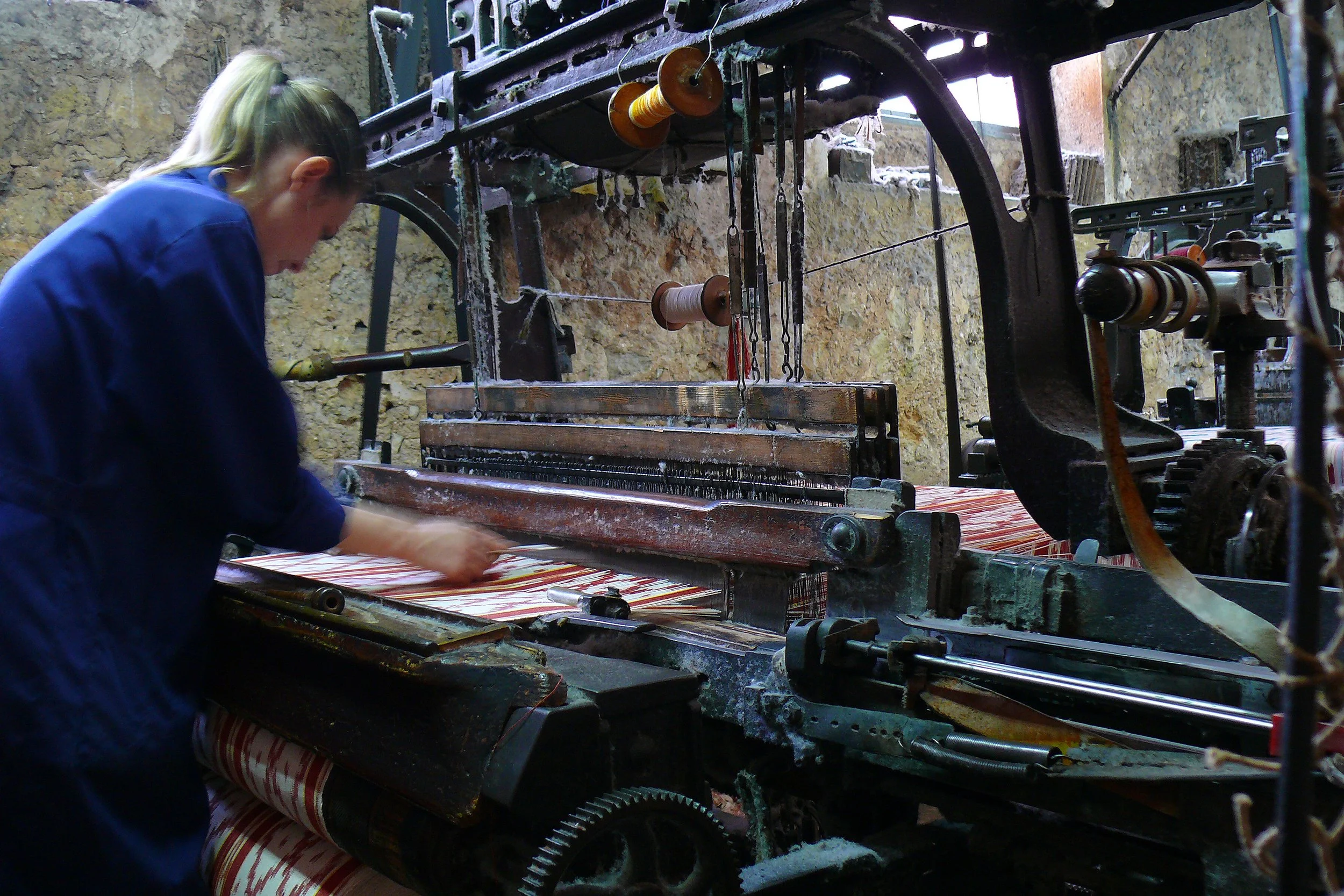Guillermo Bujosa Bover aprendió su oficio por tradición familiar en el taller de tejido y tintes donde empezó a trabajar a los 16 años. Los “ikats” o “telas de lenguas” son típicas mallorquinas y requieren para su fabricación un saber muy específico y sofisticado. En el taller de Guillermo, el lino y el algodón se tiñen y tejen con los mismos materiales y el mismo saber hacer centenario que practicaron sus mayores para producir estas bellísimas telas de extraordinaria calidad.